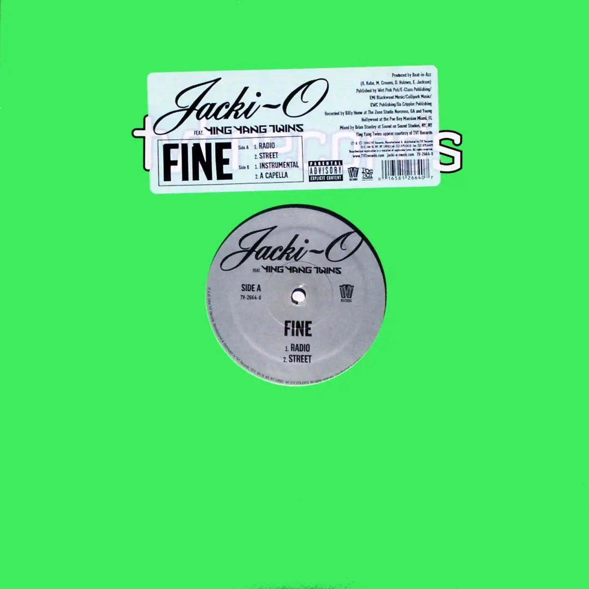 12" Maxi Jacki-O feat. Ying Yang Twins - Fine, Einheitscover der Plattenfirma mit Info-Aufkleber; Cover beschriftet, Zustand Platte VG+ Hülle VG+; Made in United States 2004 TVT Records TVT 2664-0, Tracks Radio Vers., Street Vers., Instr., Acapella
