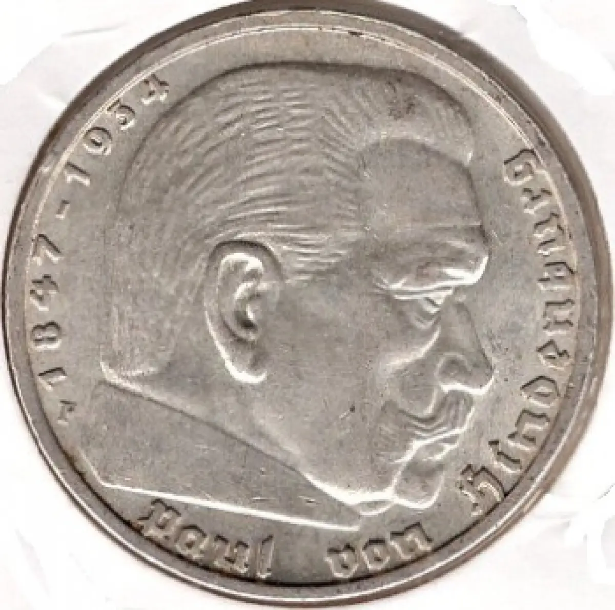 Jäger 0367 - 5 Reichsmark 1938 F Hindenburg Hakenkreuz Silbermünze