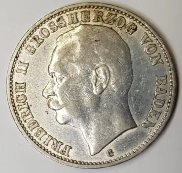 Jäger 039 - 3 Mark Baden 1909 Friedrich II Silbermünze vz-stgl