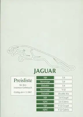 Jaguar alle Modelle Preisliste 5.1987