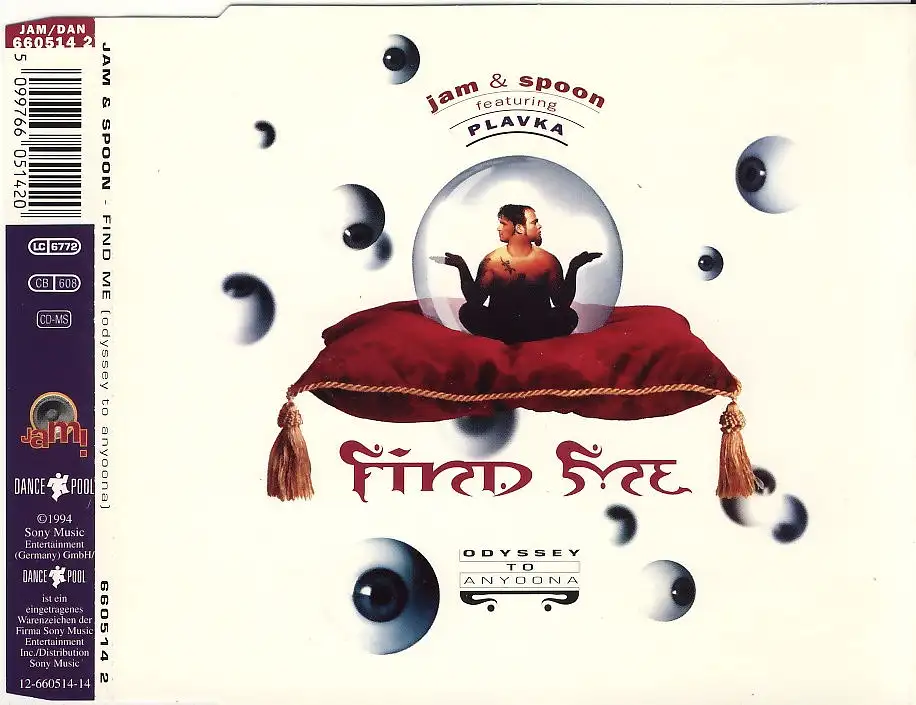 CD Single Jam & Spoon - Find Me, Zustand CD G+ Hülle M-; Made in Austria 1994 Dance Pool 660514 2, Tracks Jam & Spoon feat. Plavka - Radio Mix 4:02, Jam & Spoon feat. Plavka - 7:30, Die Kraft Der Vier Herzen 8:04, The Tribe 6:46, Odyssey To Anyoona 10:00
