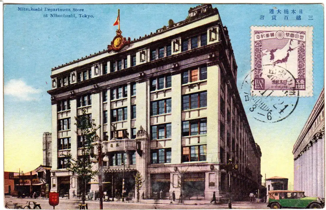 Japan, Tokyo Nihonbashi Mitsukoshi Department Store, colour-card with 1 1/2 Sn.