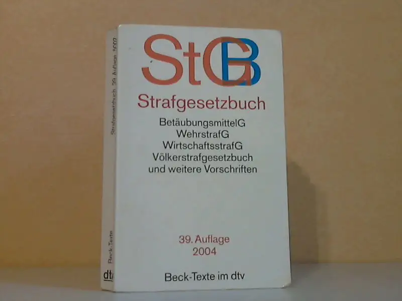 die Seiten und der Einband sind altersbedingt fleckig, Namenseintrag, untere Seitenecken sind geknickt, aus dem Inhalt: Abkürzungs Verzeichnis - Einführung von em. Universitätsprofessor Dr. jur. Dr. jur. h.c. mult. Hans-Heinrich Jescheck - 1. Strafgesetzbuch (StGB) - 2. Einfuhrungsgesetz zum Strafgesetzbuch (EGStGB) (Auszug) - 3. Völkerstrafgesetzbuch (VStGB) - 4. Gesetz gegen mißbräuchliche Inanspruchnahme von Subventionen (Subventionsgesetz - SubvG) - 5. Jugendgerichtsgesetz (JGG) (Auszug) - 6. Wehrstrafgesetz (WStG) - 7. Gesetz zur weiteren Vereinfachung des Wirtschaftsstrafrechts (Wirtschaftsstrafgesetz 1954) - 8. Gesetz über den Verkehr mit Betäubungsmitteln (Betäubungsmittelgesetz - BtMG) - 8 a. Verordnung über das Verschreiben, die Abgabe und den Nachweis des Verbleibs von Betäubungsmitteln (BetäubungsmittelVerschreibungs-Verordnung - BtMVV) - 9. Gesetz über Versammlungen und Aufzüge (Versammlungsgesetz) - 10. Straßen Verkehrsgesetz (Auszug) - 10. Straßenverkehrsgesetz (Auszug) - 12. Grundgesetz für die Bundesrepublik Deutschland (Auszug) - Sachverzeichnis Beschreibung vom Antiquariat Ardelt 4g6a ISBN-Nummer: 3423050071 Antiquariat Ardelt