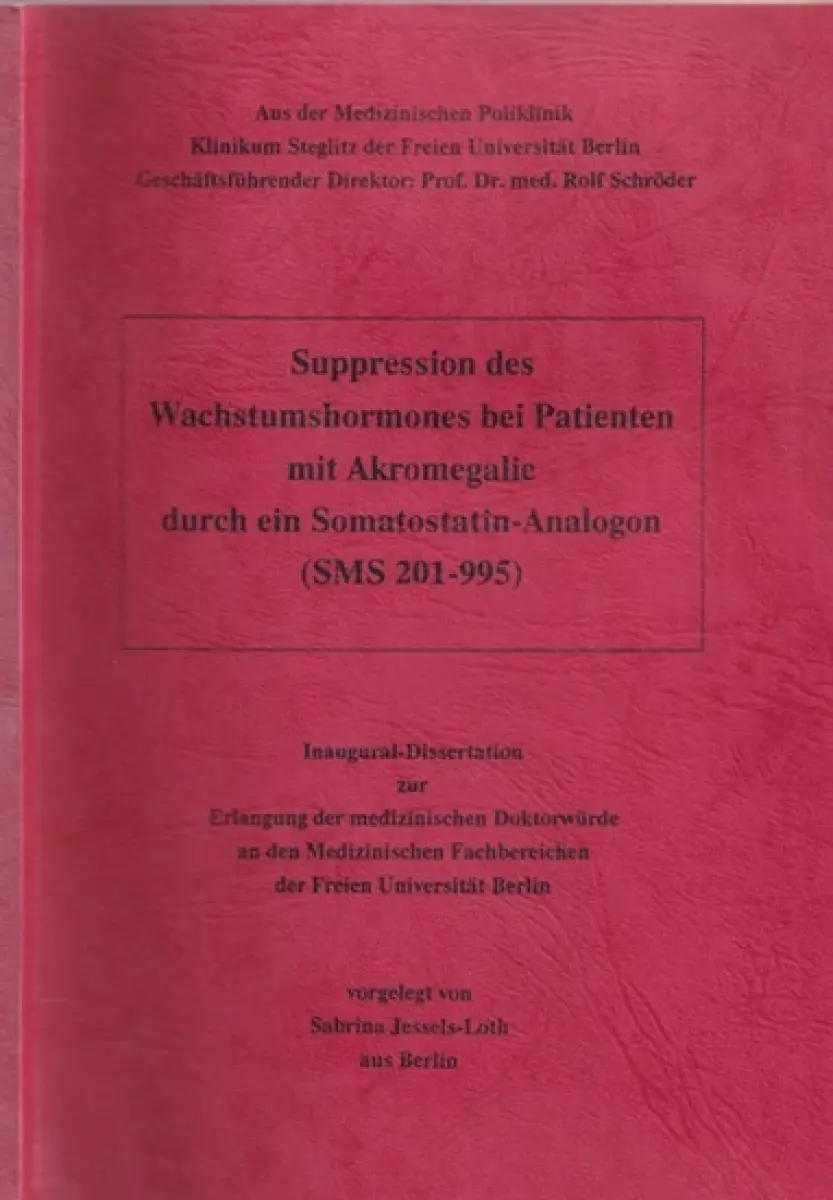 Jessels-Loth, Sabrina: Suppression des Wachstumshormones bei Patienten mit Akromegalie durch ein Somatostatin-Analogon (SMS 201-995). Disseration, Freie Universität Berlin, Klinikum Steglitz.