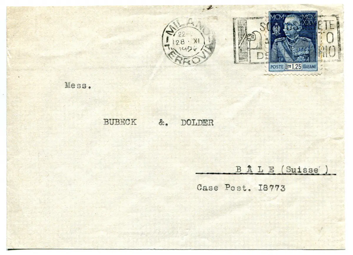 - Jubiläum Lire 1,25 gezähnt 11 Nr. 191 isoliert auf Umschlag für die Schweiz am 28.11.26 - Kat. Euro 475 n. 101/A