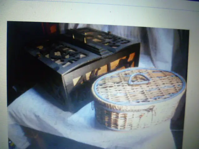 Jugendstil 1915-25 Übergang ins Art Deco Schmuck oder auch als Nähschatulle verwendbar Bastgeflecht