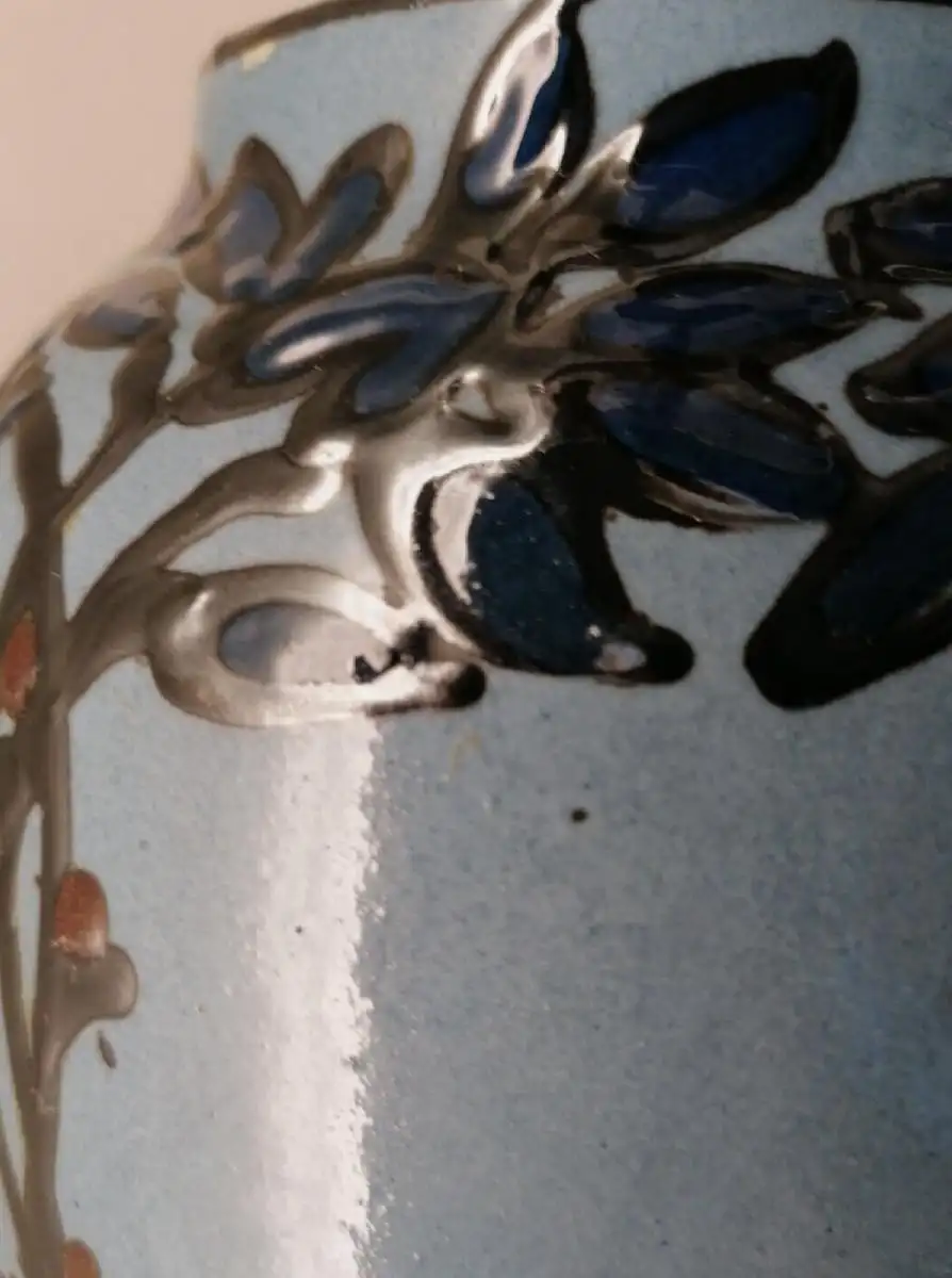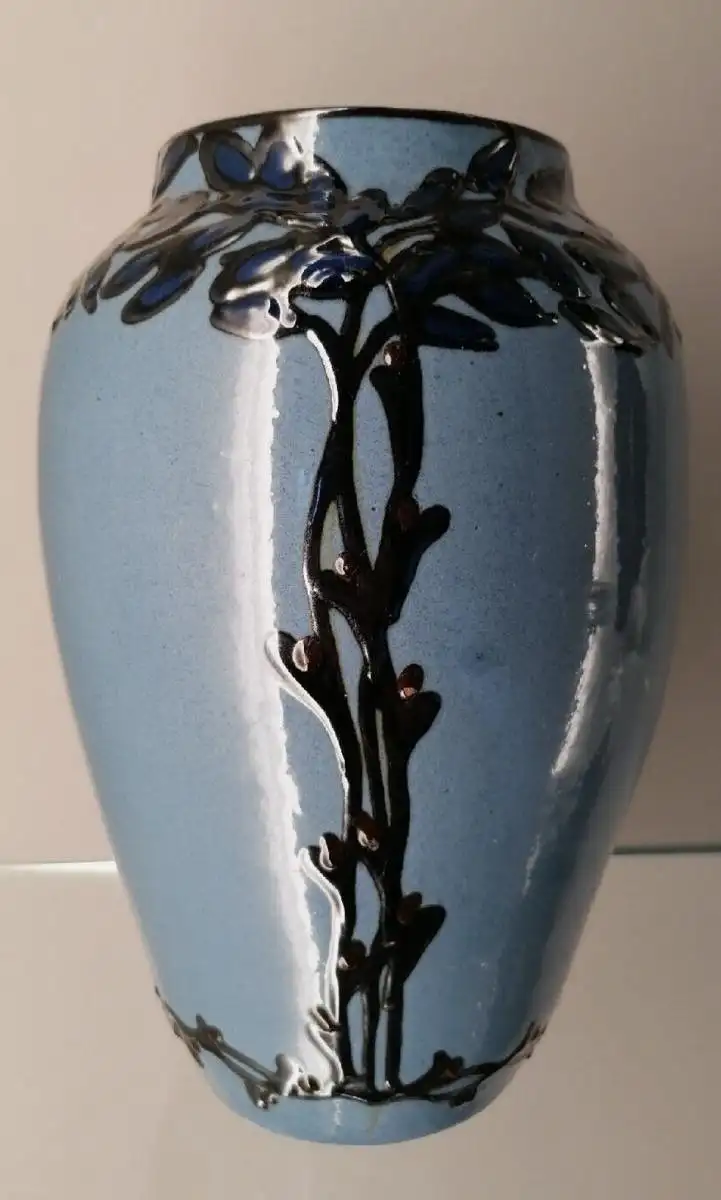 Jugendstil Keramik Vase mit Schlicker-Malerei Laeuger? Die Art der Schlicker-Malerei ist typisch für die Entwürfe von Max Laeuger Höhe 25cm geringe Abplatzen