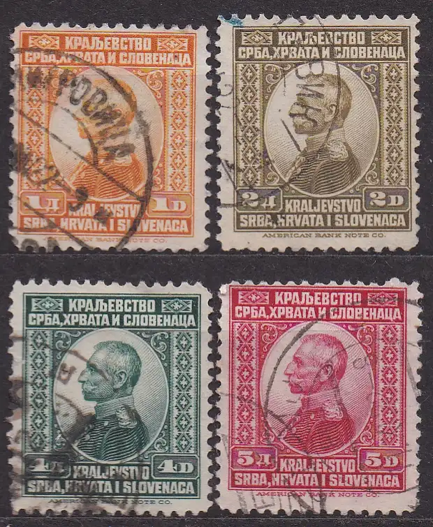Jugoslawien, Mi-Nr. 154, 155, 156 + 157 gest., König Peter I.