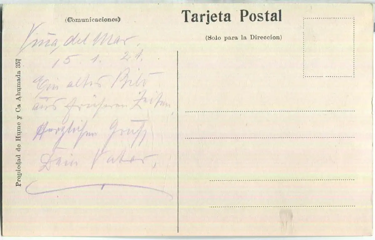 Juncal - Vina del Mar - Propriedad de Hume y Ca Ahumada - Rückseite beschrieben 1921 (E89617) *