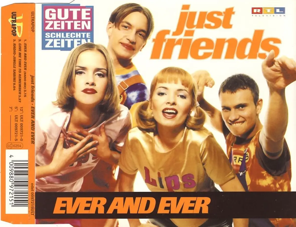 CD Single Just Friends - Ever And Ever, Zustand CD VG+ Hülle M-; Made in Germany 1995 Ultrapop 0097215 ULT, Tracks Radio Mix 3:15, Give Me Time To Remember 3:37