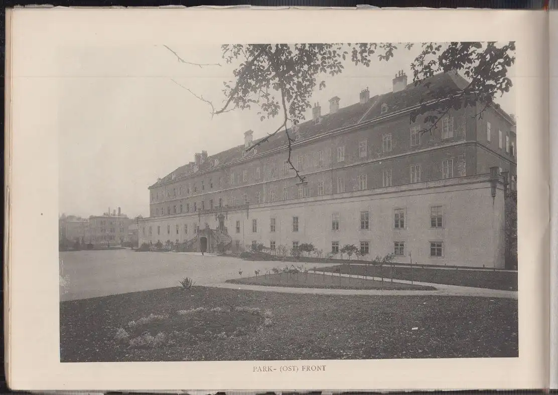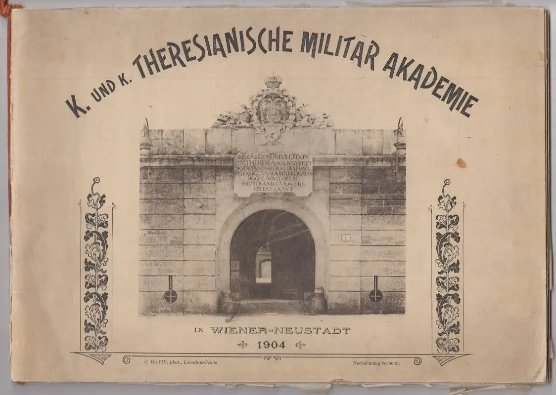 Bemerkungen: Die Theresianische Militärakademie wurde unter Maria Theresia 1751gegründet. Sie ist die älteste Militärakademie der Welt. Am Ende des 2. Weltkriegs wurde sie fast vollkommen zerstört jedoch bis Ende der 1950er Jahre wieder aufgebaut. 15 der photographischen Aufnahmen zeigen das 1945 komplett vernichtete Interieur.