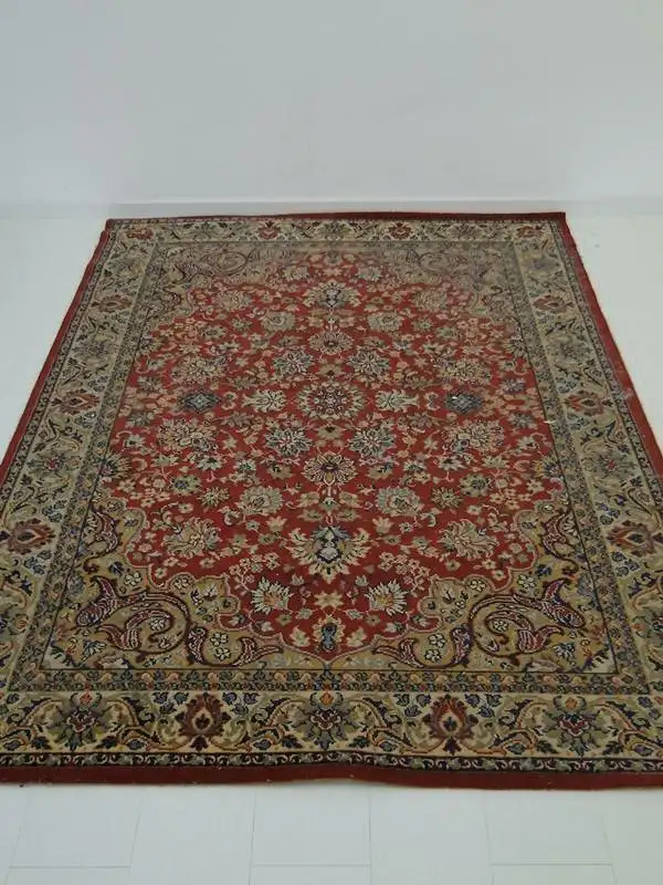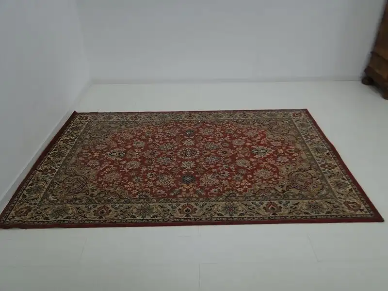 Ein wunderschöner Maschinenteppich, einwandfreier Zustand, keine Löcher, keine Risse, orientalisches Muster. Gerne lassen wir den Teppiche für Sie fachmännisch mittels Sprühextraktionsverfahren reinigen für € 50, \n\nMaße: ca. 161 x 241 cm K2