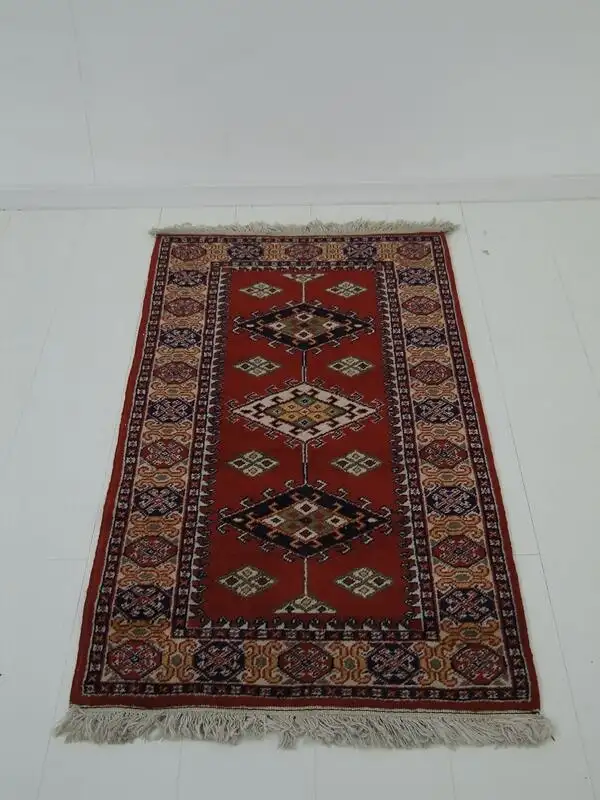 Ein wunderschöner Teppich, einwandfreier Zustand, keine Löcher, keine Risse. Gerne lassen wir den Teppiche für Sie fachmännisch mittels Sprühextraktionsverfahren reinigen für € 40, \n\nMaße: ca. 155 x 70,5 cm K5