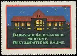 Darmstadt-Hauptbahnhof, moderne Restaurations-Räume, Ausstellung , Größe/Zustand: 4x6 , guter Zustand, Original alte Reklamemarke die seinerzeit für die Werbung benutzt wurde