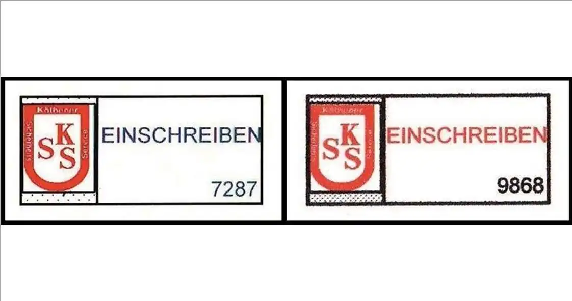 • MichSeite KSS Ltd.: MiNr. 4 - 5, 00.07.2001, "KSS im Wappen - Einschreibewerte", Satz, postfrisch Beschreibung \nAusgabeland: Bundesrepublik Deutschland \nPostdienstleister: Kurier & Service-Station LTD, Köthen (Anhalt) \nAusgabeanlass: Briefmarkenausgabe "KSS im Wappen - Einschreibewerte", einzeln nummeriert Katalognummer: - Ausgabedatum: 00.07.2001 Nominale: Satz (2 Werte) zu 1,50 DM / 1,21 EUR (Einwurfeinschreiben, blau), 3,50 DM / 2,23 EUR (Übergabeeinschreiben, rot) \nTyp: - \nErhaltung: selbstklebend, gerade gestanzt, postfrisch \nHinweis: -