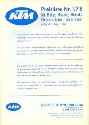 KTM Preisliste 1.1978