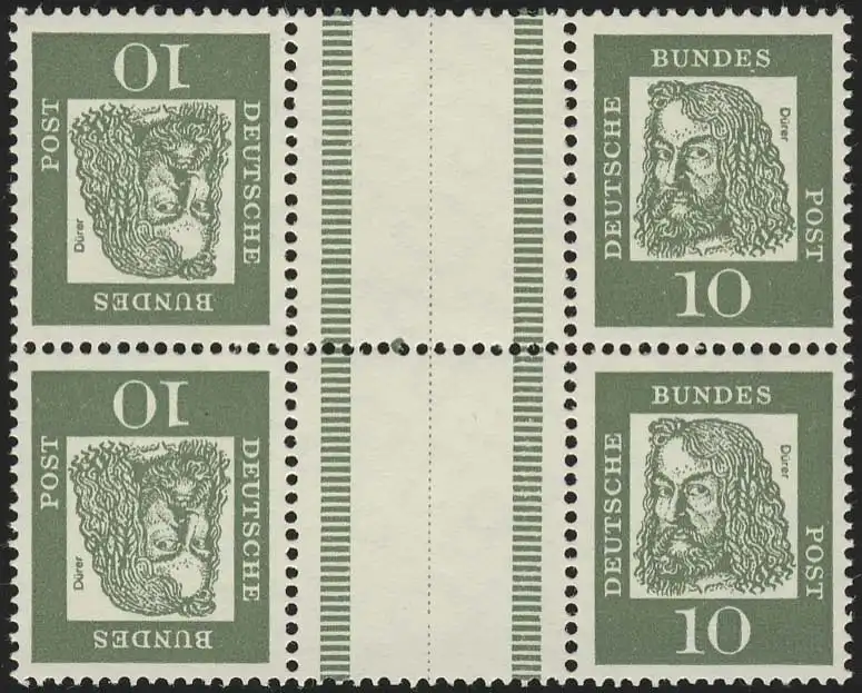 KZ1 ZD-Paar Dürer, Farbpunkt mittig in Zähnung, **
