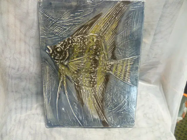 Kahaku Shinko Wandkachel Fisch Modern Art 1960-70