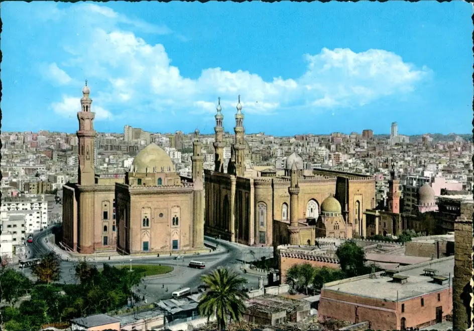 Kairo القاهرة Panorama-Ansicht mit Sultan Hassan Mosque Moschee 1960