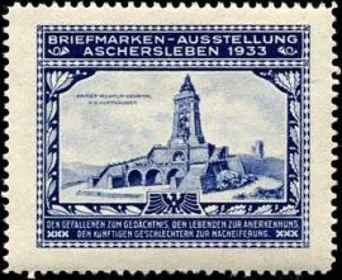 Den Gefallenen zum Gedächtnis, den Lebenden zur Anerkennung. Den künftigen Geschechtern zur Nacheiferung. Briefmarken - Ausstellung, blau, Größe/Zustand: 4x5 , guter Zustand, Original alte Reklamemarke die seinerzeit für die Werbung benutzt wurde