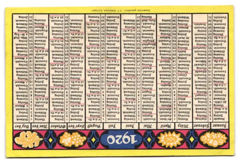 Kalender 1920, Russikon, Winkler's Kraft-Essenz