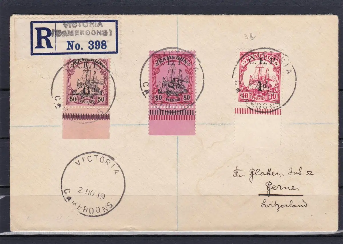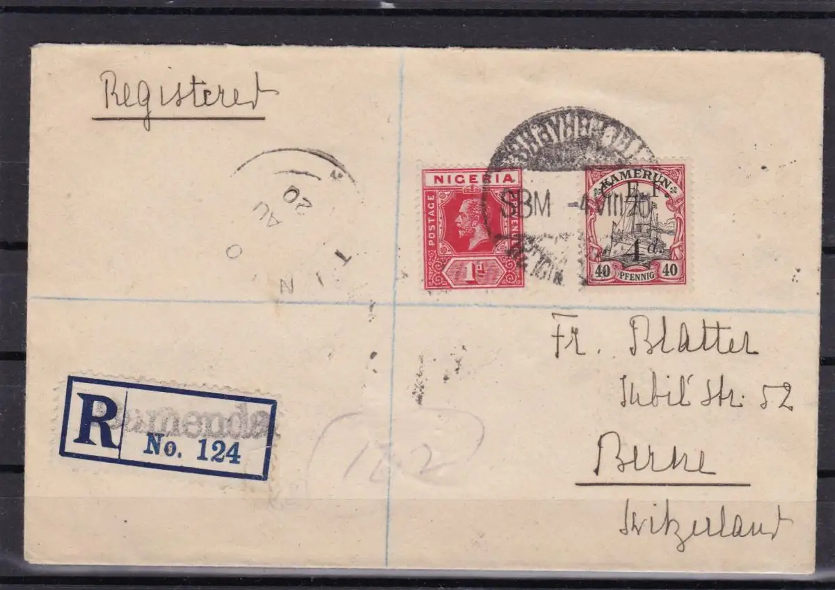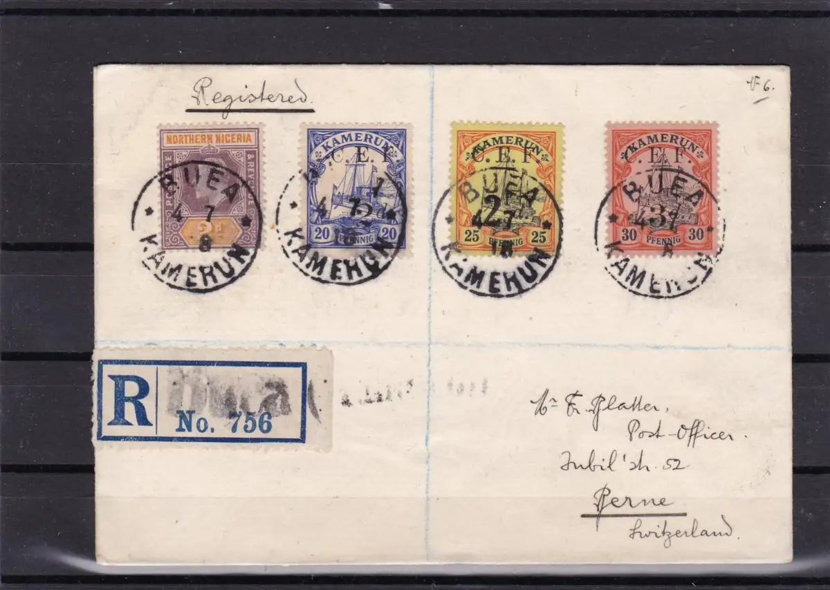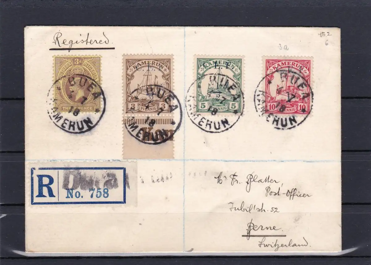 Kamerun: Briefe MiNr. 1-9 und 3b auf 4 Einschreiben Briefen