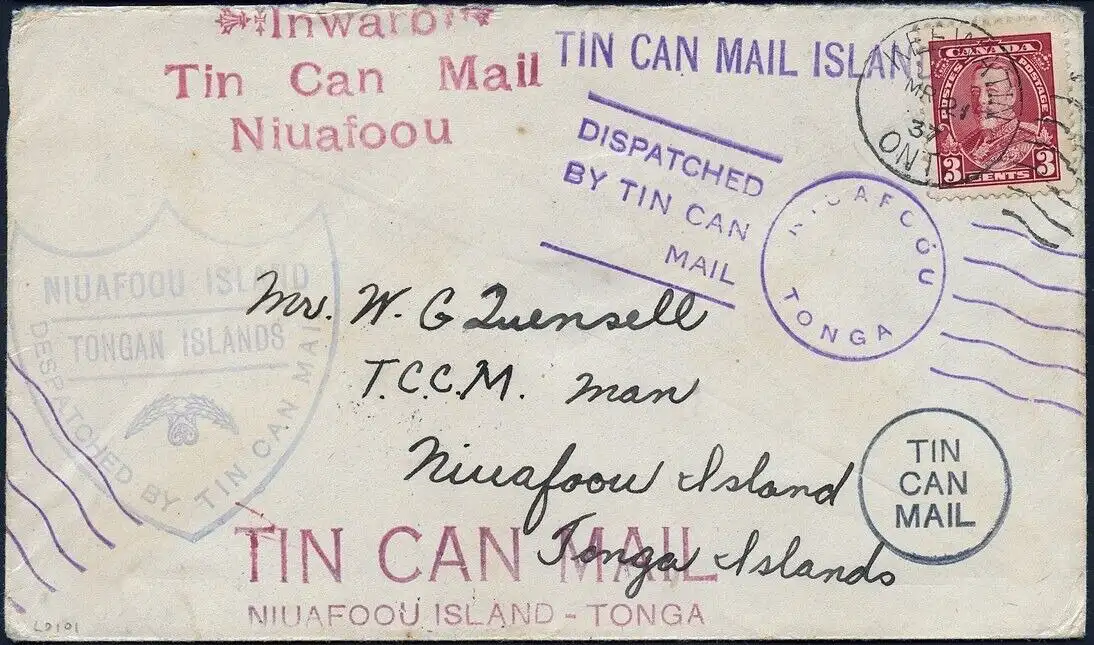 Brief aus Kanada via Blechdosenpost nach Niuafo`ou gelaufen.