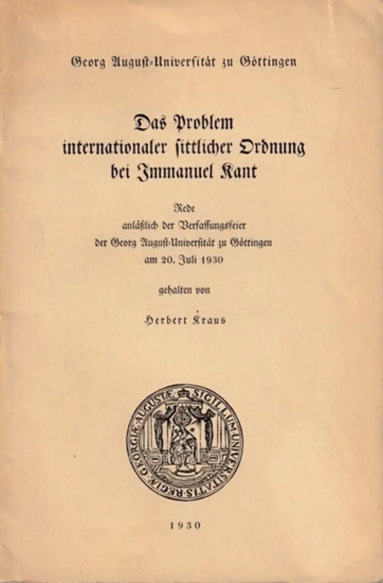 Titel: Das Problem internationaler sittlicher Ordnung bei Immanuel Kant. Rede anläßlich der Verfassungsfeier der Georg August-Universität zu Göttingen am 20. Juli 1930 gehalten von Herbert Kraus