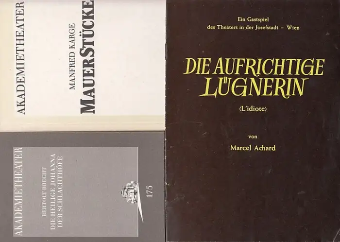 Titel: Programmheft des Akademietheaters Wien: Heft 64 "Mauerstücke" von Manfred Karge und Heft 175 "Die heilige Johanna der Schlachthöfe" von Brecht. Beigabe Theater in der Josefstadt-"Die aufrichtige Lügnerin" von Marcel Achard. Konvolut von 3 Heften