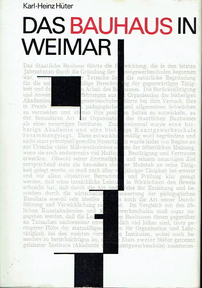 Karl-Heinz Hüter: Das Bauhaus in Weimar Studie zur gesellschaftspolitischen Geschichte einer deutschen Kunstschule.