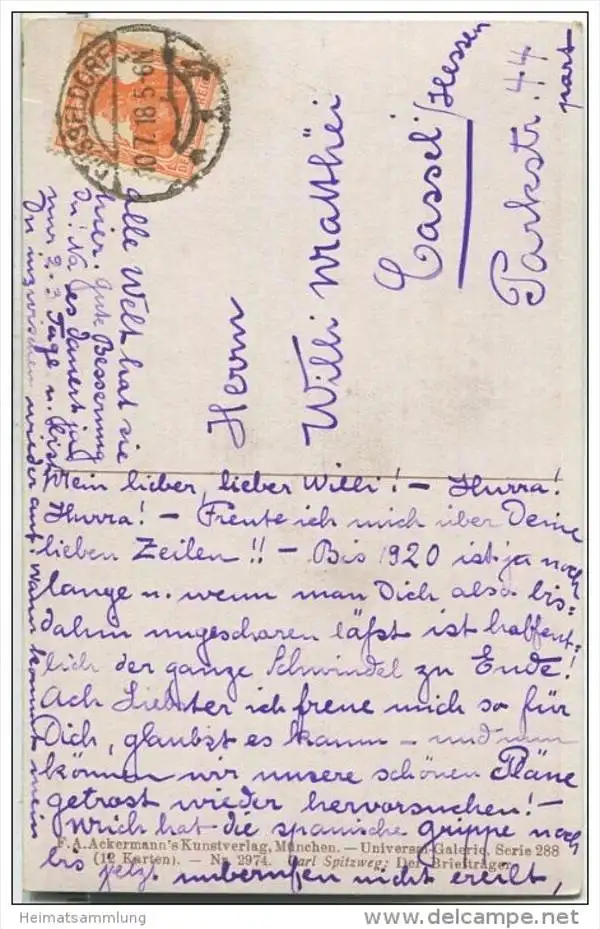 Karl Spitzweg - Der Briefträger - Verlag F. A. Ackermann München (G35855) gel. 1918