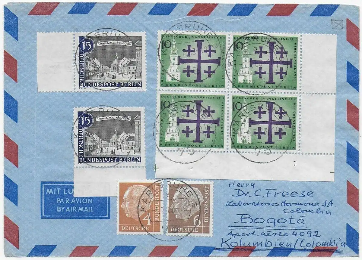 Karlsruhe, Luftpostbrief 1963 nach Bogotá, Kolumbien, Form Nr. 1
