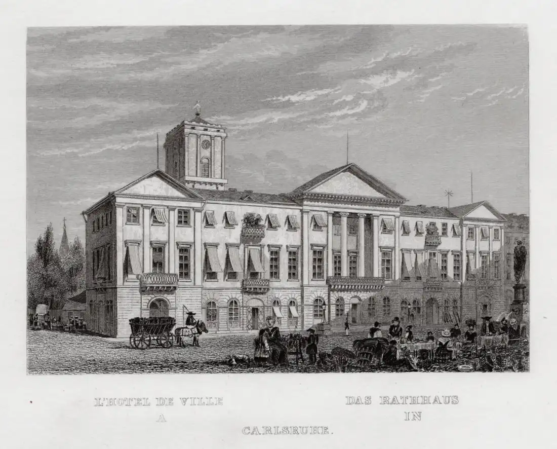Karlsruhe, Rathaus Echter Stahlstich, Geib um 1840