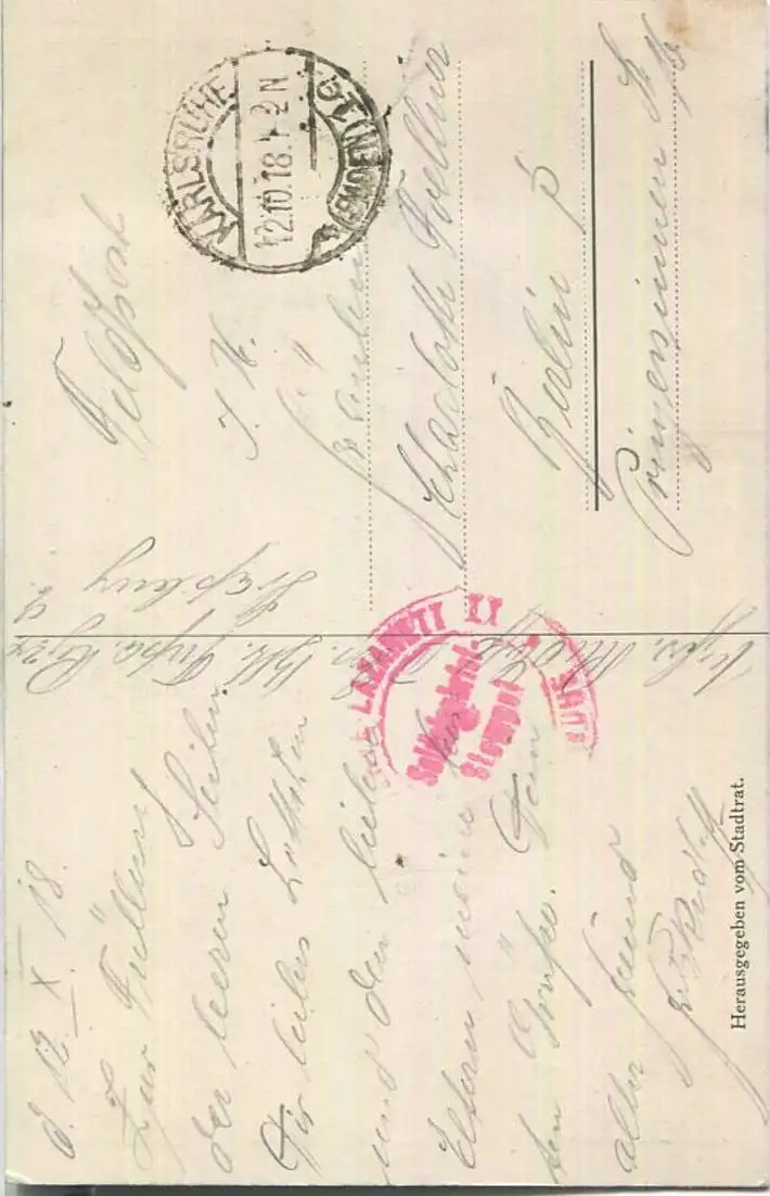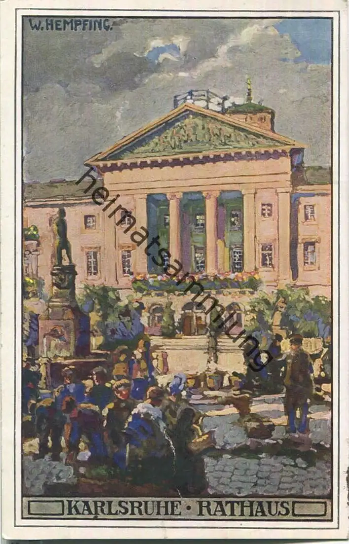 Karlsruhe - Rathaus - signiert W. Hempfing - Feldpost