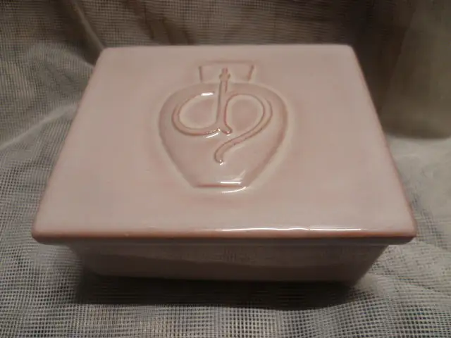 Karlsruher Majolika Deckeldose aus meiner Vitrine ; Höhe: 4,5cm x 8,5cm x 10 cm