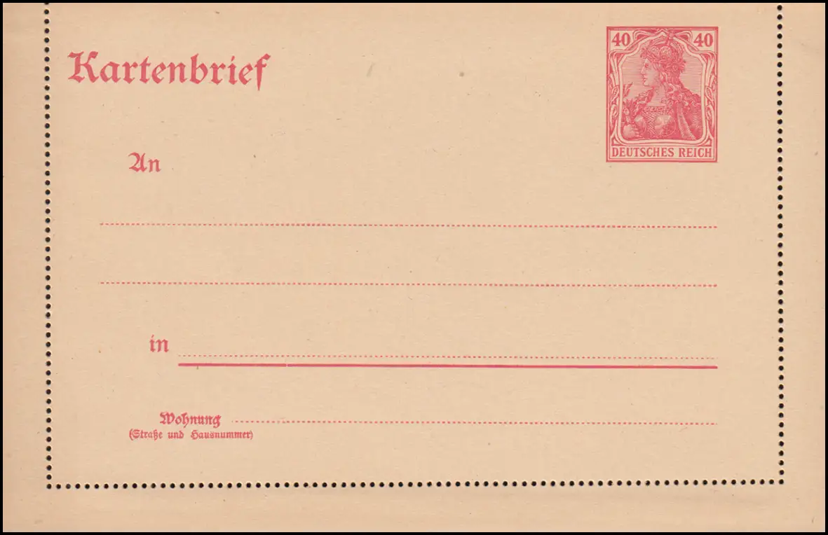 Kartenbrief K 13 Germania 10 Pf karminrot, ** wie verausgabt