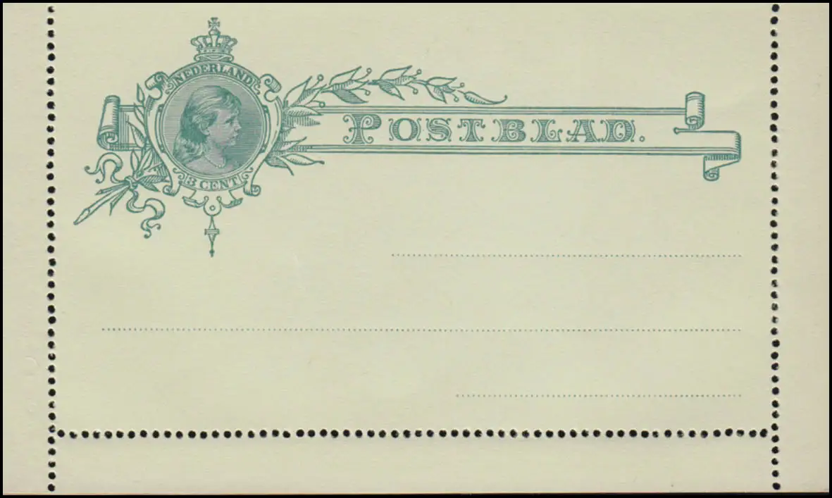 Kartenbrief K 3B Königin Wilhelmina 3 C. Format 118x70, ungebraucht ** / MNH