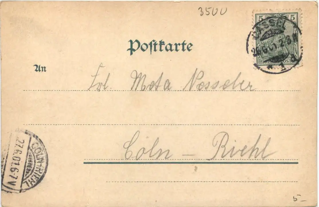 Danke. Alles Bestens. Können Sie mir allenfalls mitteilen, aus welchem Jahr die Postkarte stammt? Besten Dank.