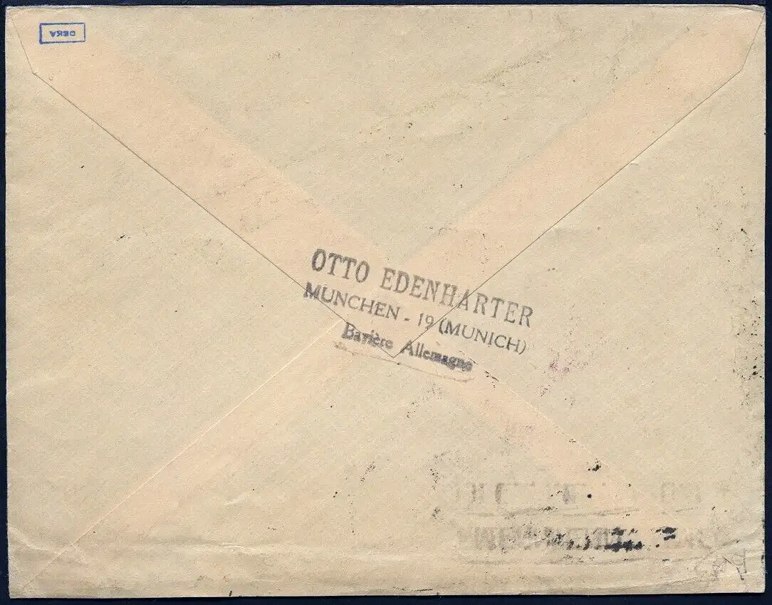 Brief via Nachbringeflug von Köln nach Cherbourg zum Dampfer Bremen und weiter mit Katapultpost nach Cleveland gelaufen.