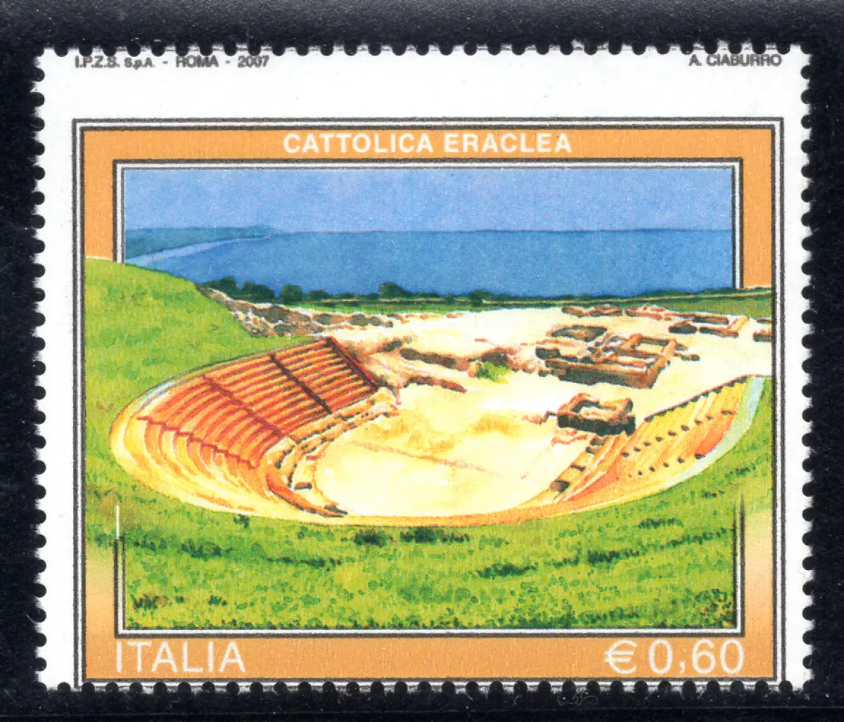 Cattolica Eraclea Sorte verschobene Verzahnung Vollgummi - Turistica 2007 Cattolica Eraclea mit verschobener Verzahnung, die Beschriftungen IPZS Rom und Name des Graveurs sind oben statt unten - Ungewöhnlich - Nr. 105/WEB