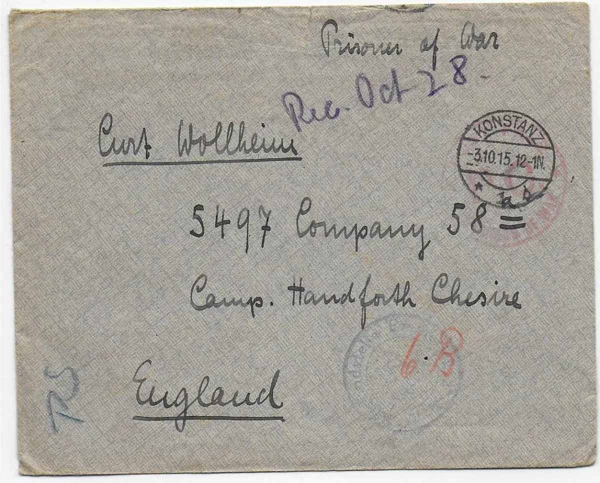 Kgf, PoW: 1915 Konstanz an Camp Handforth Chesire, England