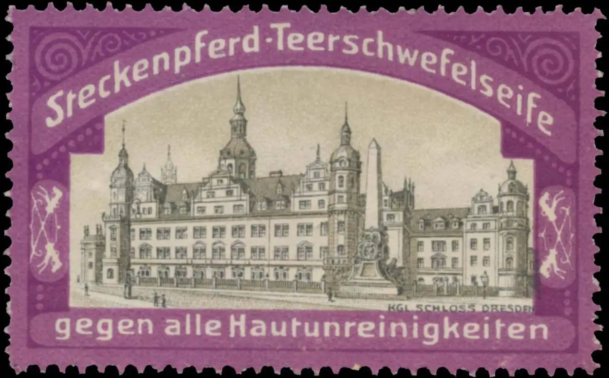 Steckenpferd-Teerschwefelseife, gegen alle Hautunreinigkeiten. Violett, Größe/Zustand: 3x5 , guter Zustand, Original alte Reklamemarke die seinerzeit für die Werbung benutzt wurde
