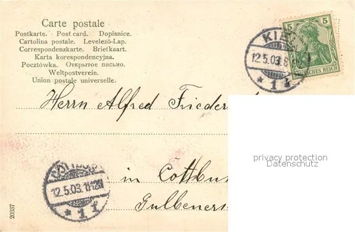 Kiel Kriegshafen Kiel postalisch gelaufen 1903 Erhaltung siehe scans [LiesaD40] LiesID40