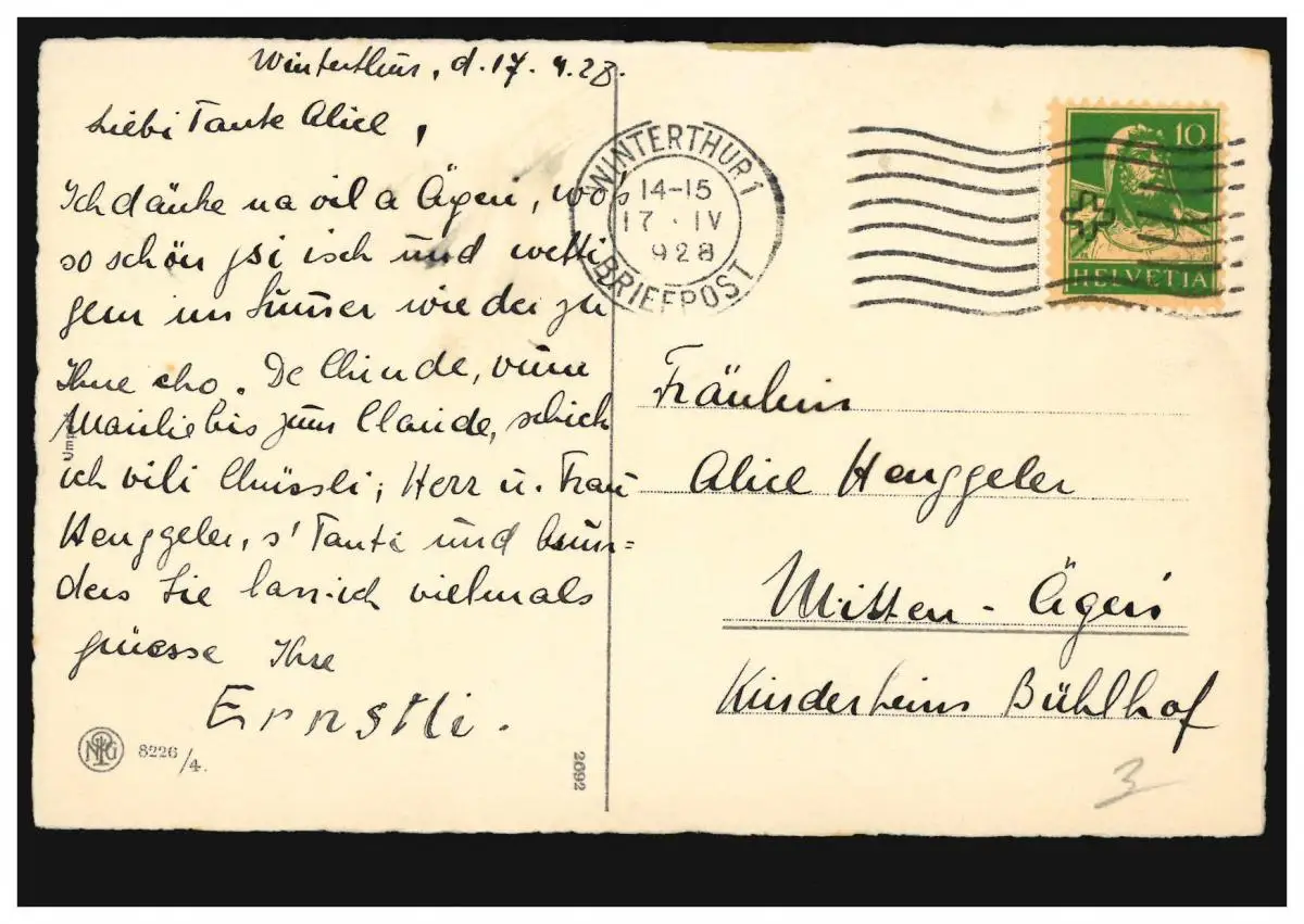 Kinder-AK Junge mit Gitarre: Leise klingen meine Lieder ..., WINTHERTHUR 17.4.28