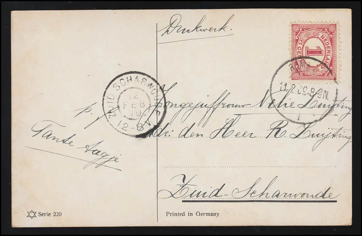 Kinder AK Junge teilt Essen Vogel im Käfig, NL ZUID SCHARWOUDE 12.2.1909
