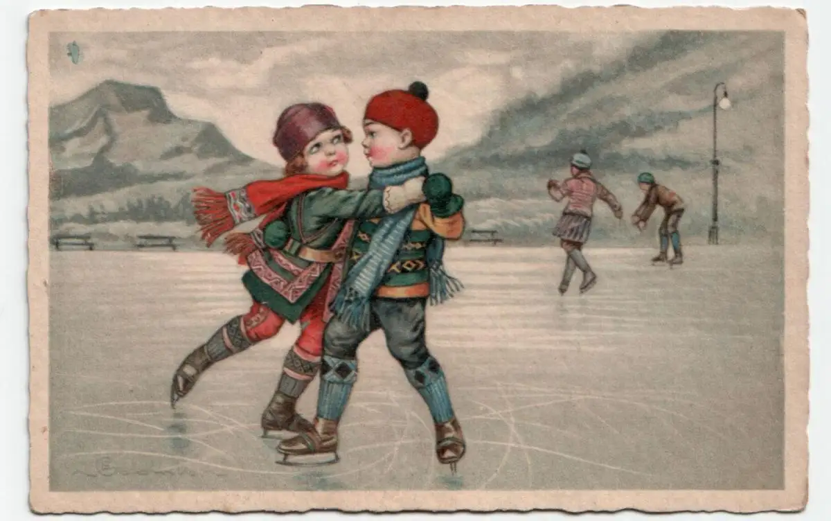 Kinder Eislaufen // Alte Ansichtskarte