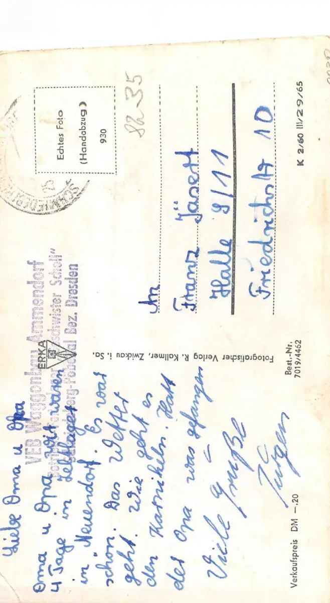 Die Lieferung geht sehr schnell, aber auch weil ich vorher schnell bezahle. Alte Ansichtskarten, speziell für den Ort OT Westewitz /von Großweitzschen und Hochweitzschen suche ich weiter. Ich wünsche Ihnen persönlich alles Gute.
