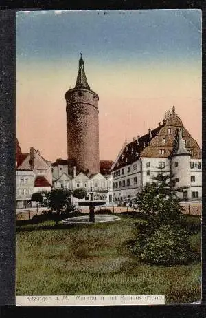Kitzingen. Marktturm mit Rathaus - Nicht gelaufen. Kl. Eckknick. (NPLZ 97301)