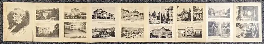 Klapp-AK Bayreuth, Richard Wagner-Theater, Villa Wahnfried, Liszts Grabkapelle, Marktplatz