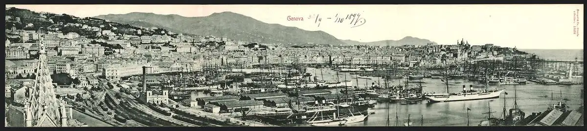 Klapp-AK Genova / Genua, Panorama des Hafens